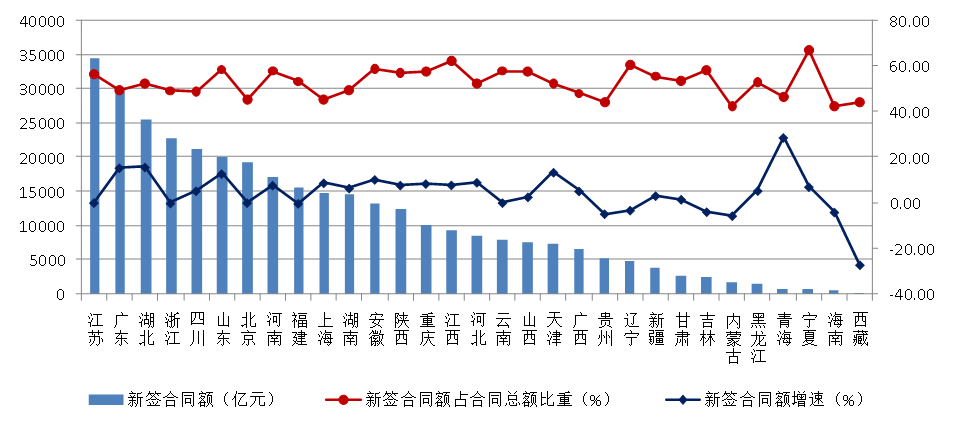 (二)江苏新签合同额以较大优势占据首位8个地区出现负增长