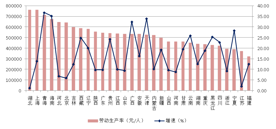 图19  2021年各地区建筑业劳动生产率及其增长情况
