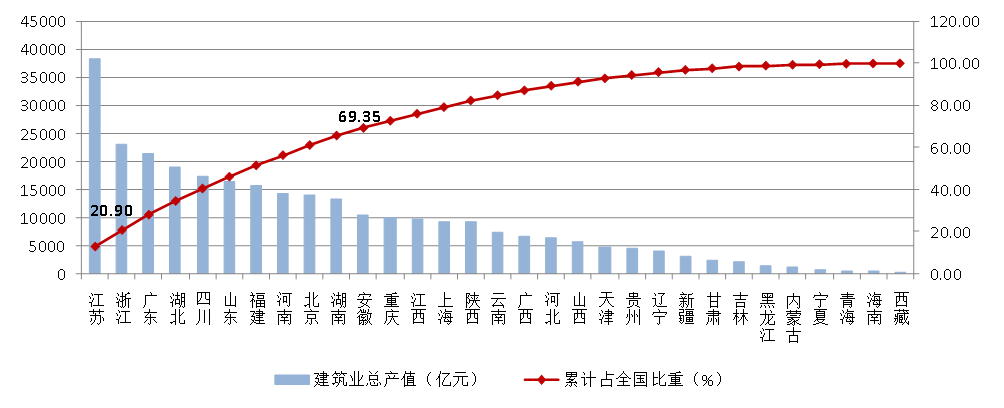 (一)江苏建筑业总产值以绝对优势领跑全国鄂、新增速较快