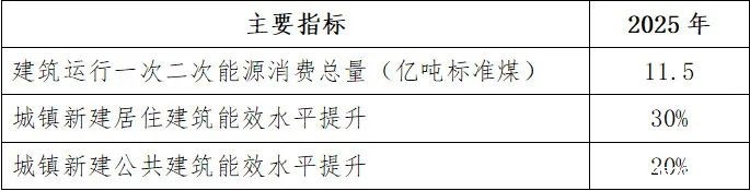 1.总体目标。到2025年,城镇新建建筑全面建成绿色建筑,建筑能源利用效率稳步提升,建筑用能结构逐步优化,建筑能耗和碳排放增长趋势得到有效控制,基本形成绿色、低碳、循环的建设发展方式,为城乡建设领域2030年前碳达峰奠定坚实基础。