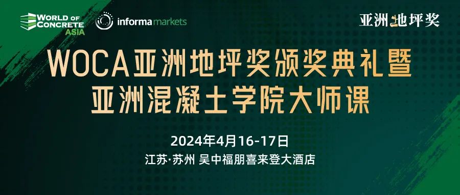 行业盛典 | WOCA 亚洲地坪奖颁奖典礼暨亚洲混凝土学院大师课启动报名