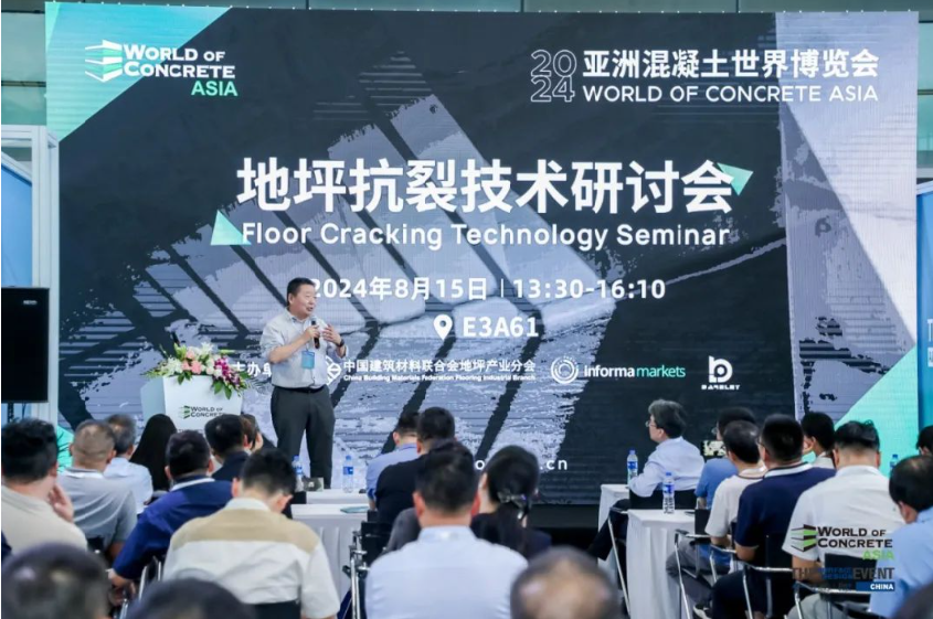 WOCA地坪抗裂研讨会议上,北京华朋环保科技有限公司总经理华鹏揭开了新型材料——玄武岩纤维的神秘面纱,深入探讨其在混凝土地坪中的应用及其卓越的抗裂效果。同时,上海博尔泰工业产品设计有限公司副总经理陈杰介绍了翻新砂浆在整体地面修复中的方法和优势,特别是针对开裂地坪的有效处理方案,以满足日益增长的翻新市场需求。此外,施贝化学(中国)有限公司整体地坪事业部总监杨玫分享了高性能钢纤维在混凝土地坪抗裂中的重要性及显著特质。最后,马贝建筑材料( 广州) 有限公司产品开发及技术服务总监沈金如介绍了其再混凝土系统方面的研发成果。嘉宾们毫无保留的分享为解决行业痛点、保障施工安全提供了宝贵经验。