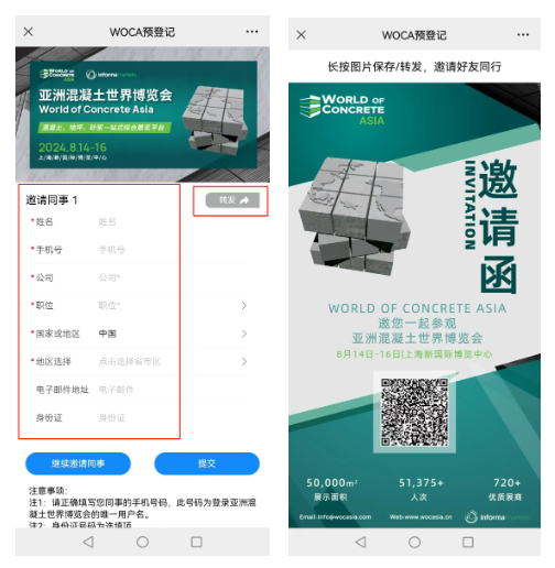 参与方式:下载《WOCA组团参观报名表.xlsx》进行填写,并将填写好的表格通过邮件发送至sophia.li@informa.com