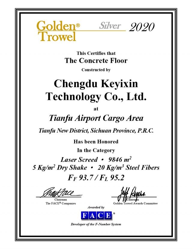 - 成都科艺欣科技有限公司——成都天府国际机场货运区项目(全球金镘刀银奖)