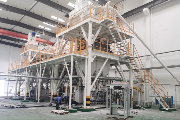 腻子粉生产线指将双飞粉、石膏粉、羧甲基纤维粉、缓凝剂、增稠剂等原料混合成腻子粉并实现其连续性生产的专业生产设备。腻子粉生产线主控制系统依据选定工艺配方下达生产指令,系统自动从储料仓中按配比提取原料,原料经过配重后进入待混仓,然后经过双轴无重力混合主机搅拌,实现快速混合作业。达到混合精度要求后,成品砂浆被输送至具备二次混合功能的成品仓,进入自动包装系统,这样我们的腻子粉产品就生产出来了,使用全自动腻子粉生产线大大提高产出效率。