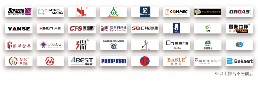 展商来自混凝土、地坪、砂浆全产业链,有通用混凝土专区、混凝土表面处理专区、地面材料专区、砂浆/石膏技术/砌筑专区、创新产品展区、运动地坪展区六大专区,集结全球知名品牌商,部分参展品牌如下——